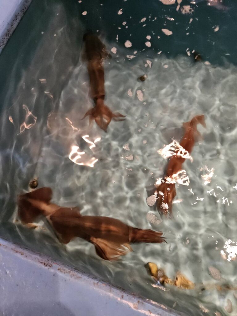 いけすで泳いでいるイカをその場で調理してくれるお店です。