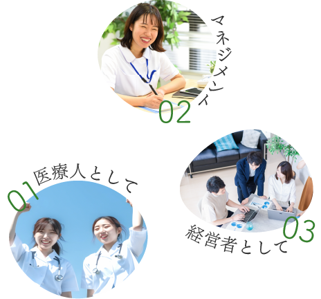 また、在宅医療を通して、医療人としての知見や技術の研鑽、マネジメントや経営についてのキャリアパスを経験する事も可能です。